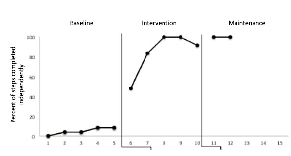 Here is an example of the percent of steps completed independently by Ivan in packing backpacks as a volunteer service.